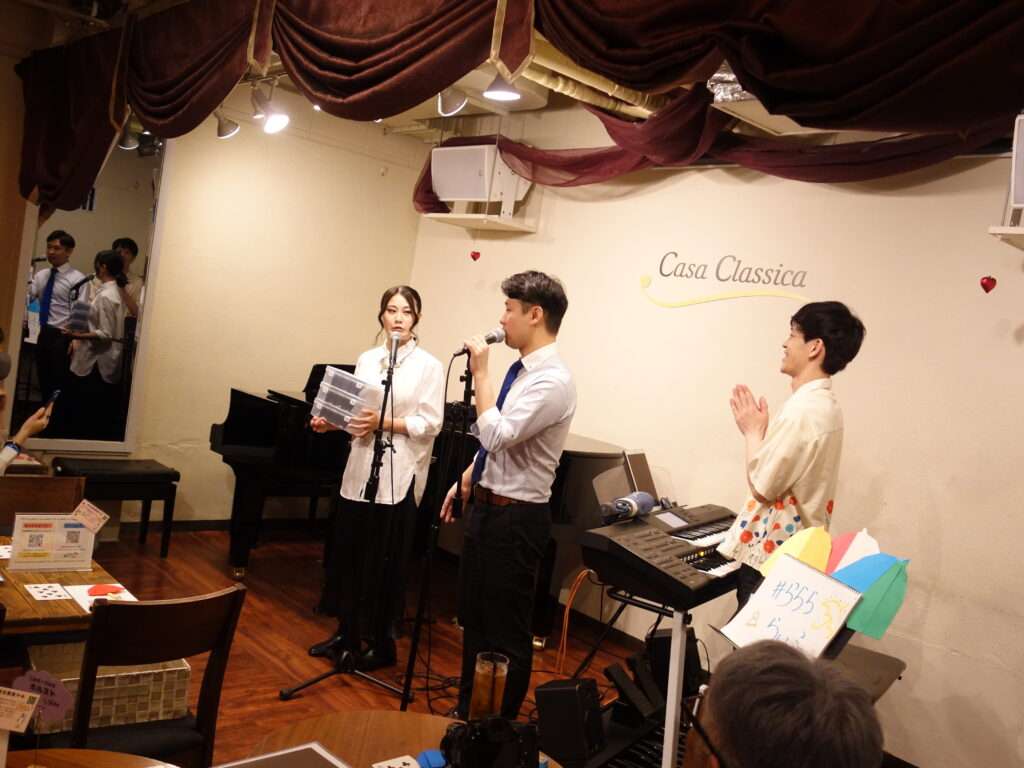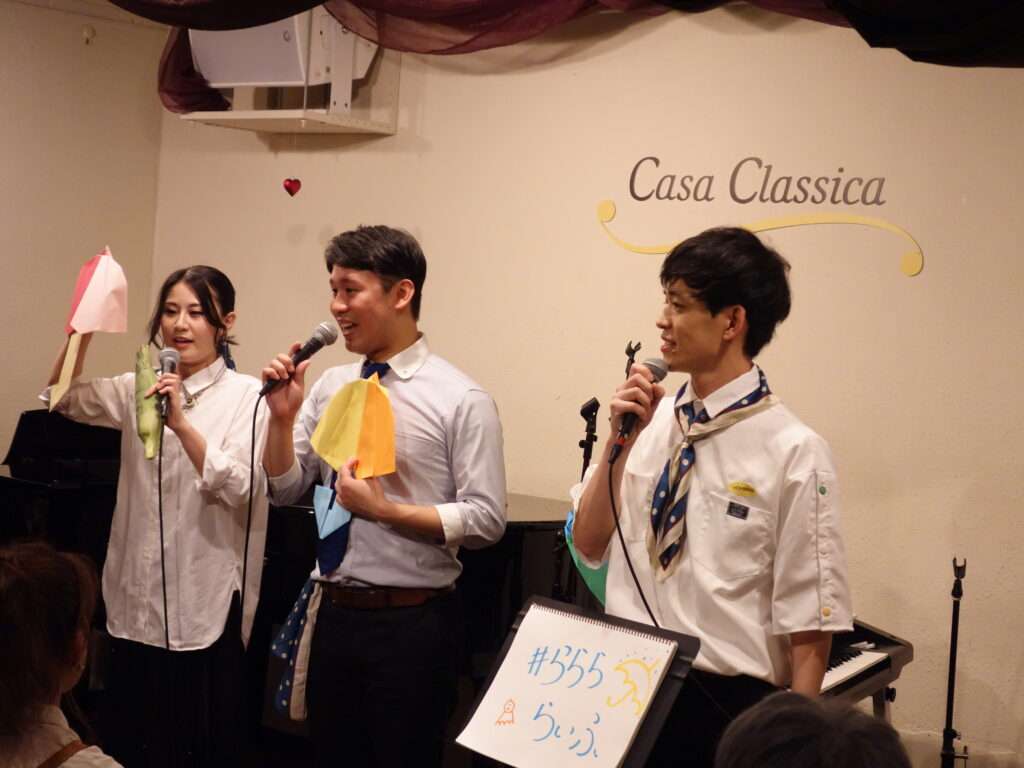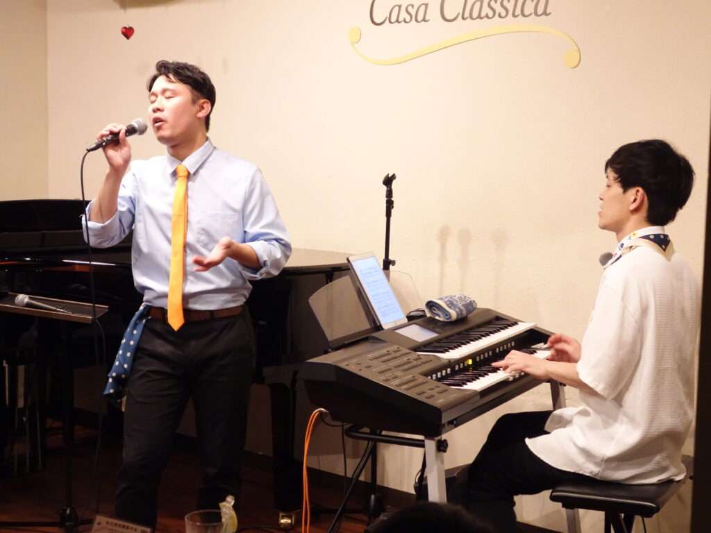 本日の東京クラシック ライブハウス 赤坂カーサクラシカは、Lifeの本多羅偉さん(ヴォーカル)、南颯希さん(ヴォーカル)、おっちさん(エレクトーン)のご出演で、~♩=rain and~でした!元気いっぱいのアニソン、しっとりとした恋の歌、雨の曲メドレー等々、それぞれの個性あふれるパフォーマンスが繰り広げられ、お出迎えからお見送りまで、ファンの皆様へのおもてなしいっぱいの楽しい時間をありがとうございました🎶Lifeの皆さま、次回は9月7日(日)夜の部にご出演してくださいます!詳細はこちら★ぜひ足をお運びください!