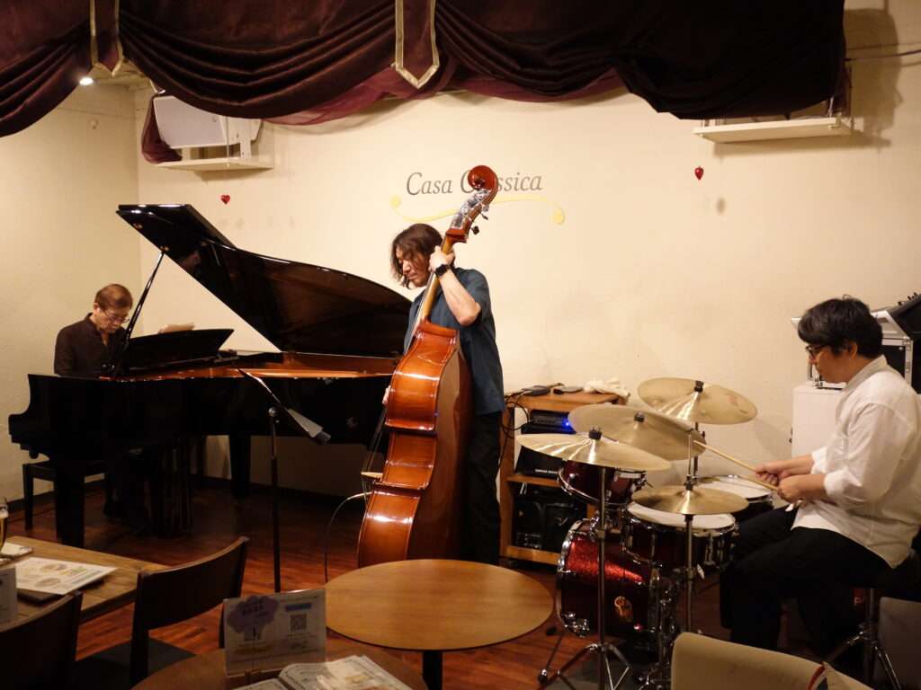 本日の東京クラシック ライブハウス 赤坂カーサクラシカは、LDL-c 角田真己さん(ピアノ)、鈴木孝弘さん(ベース)、村上和人さん(ドラムス)のご出演でした。オリジナル曲を中心としたジャズナンバーの数々でゆったりと流れる週末のひとときをお過ごしいただいた2ステージでした。穏やかなグルーヴ間のなかに、うちに秘めた強い個性とこわだりを躍動させるピアノ、ベース、ドラムスの掛け合いは三人の無言歌に心を揺さぶられるようでした。LDL-cさんの、また次回のご出演を楽しみにしております。
