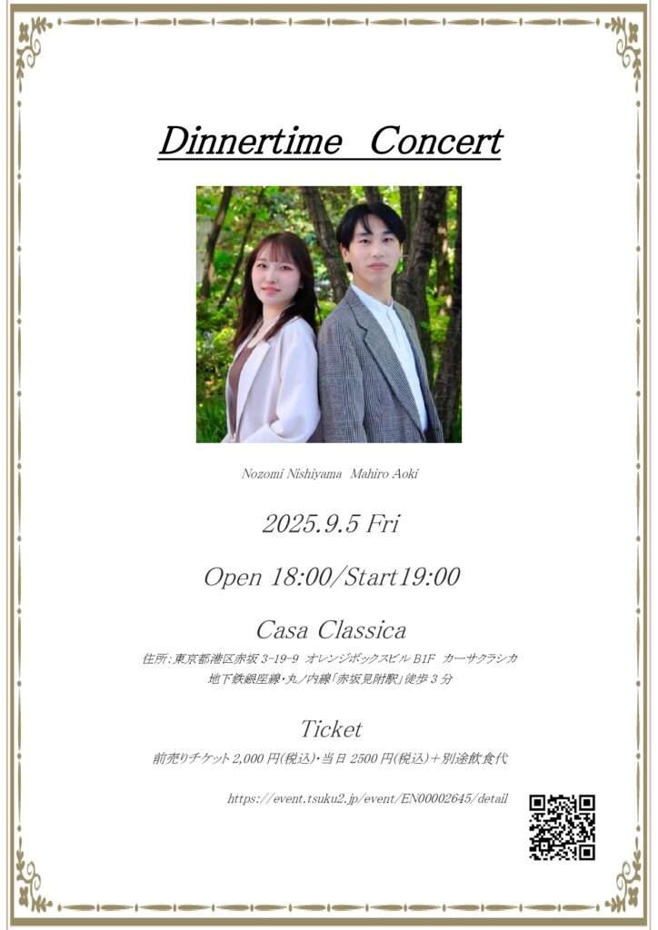 9月5日(金)夜の部 西山望(ピアノ)青木万海(ピアノ)~Dinnertime Concert~