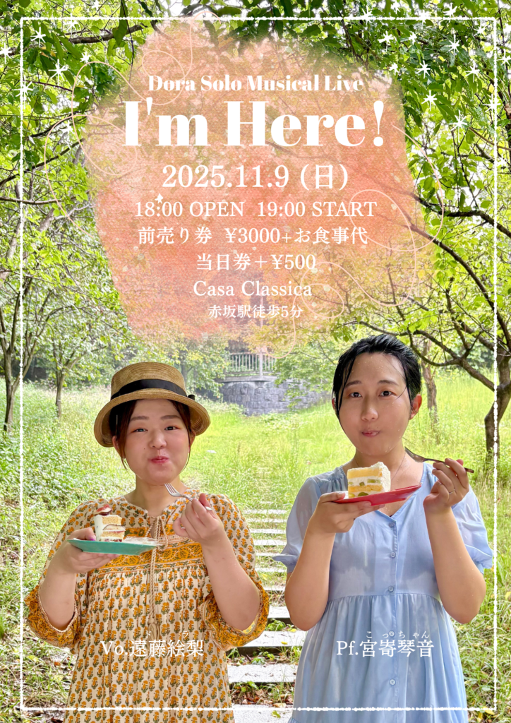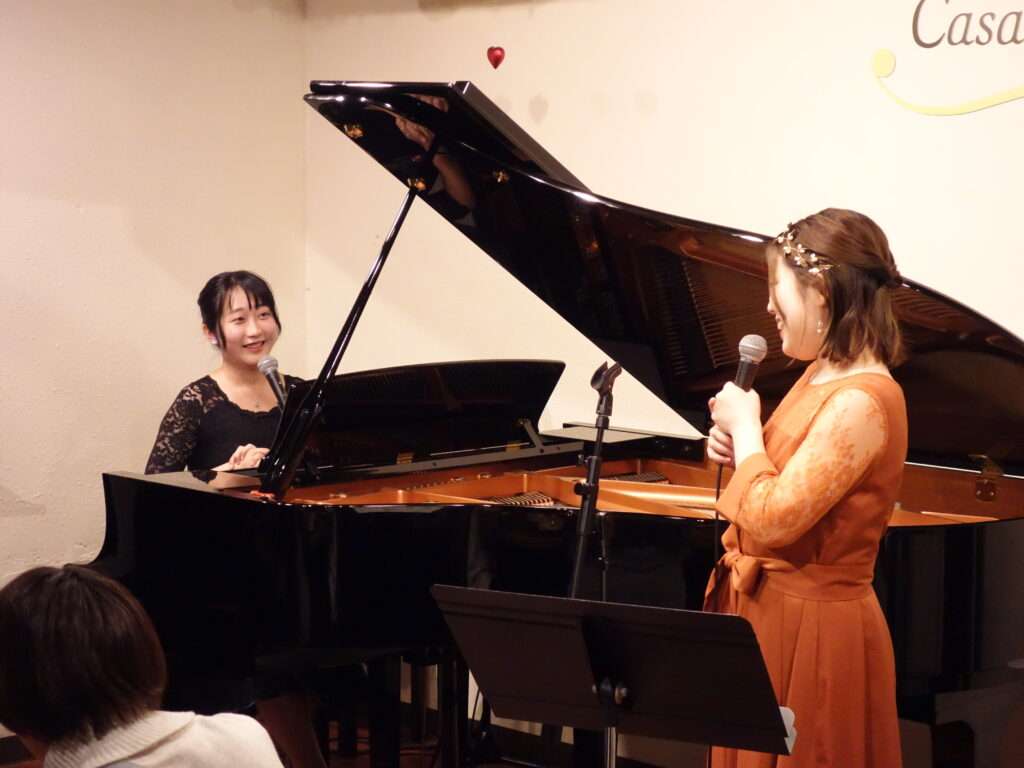 本日の東京クラシック ライブハウス 赤坂カーサクラシカは、遠藤絵梨さん(ヴォーカル)宮㟢琴音さん(ピアノ)ご出演、Dora Solo Musical Live~I’m Here!でした。舞台でご活躍の遠藤さんのソロライブという事で、ご自身のお好きな曲をたくさん詰め込んだ、笑いあり感動あり、今までの舞台歴を振り返りながらの豪華なプログラムに満席のお客さまもノリノリで聴き入っていらっしゃいました。宮嵜さんの自在のピアノ、遠藤さんの伸びやかな歌声で、素敵なパフォーマンスを披露してくださり、休日の夜にぴったりのエンターテイメントとなりました。元気いっぱい楽しいライブをお届けくださったお2人、またのご出演もお待ちしております!