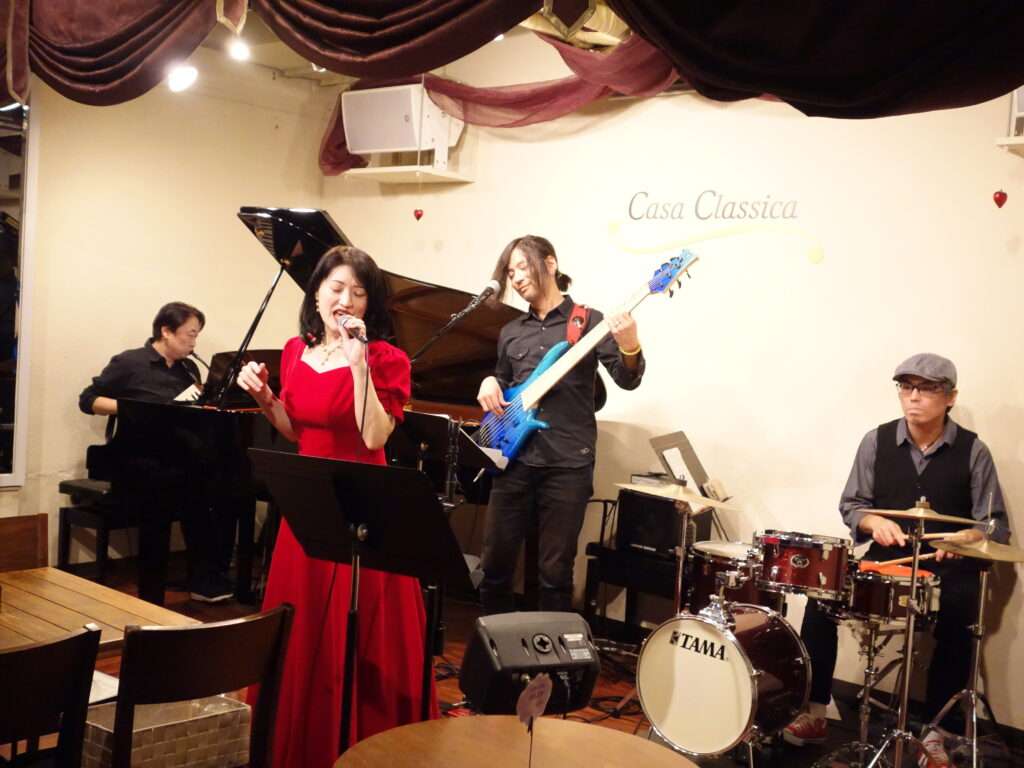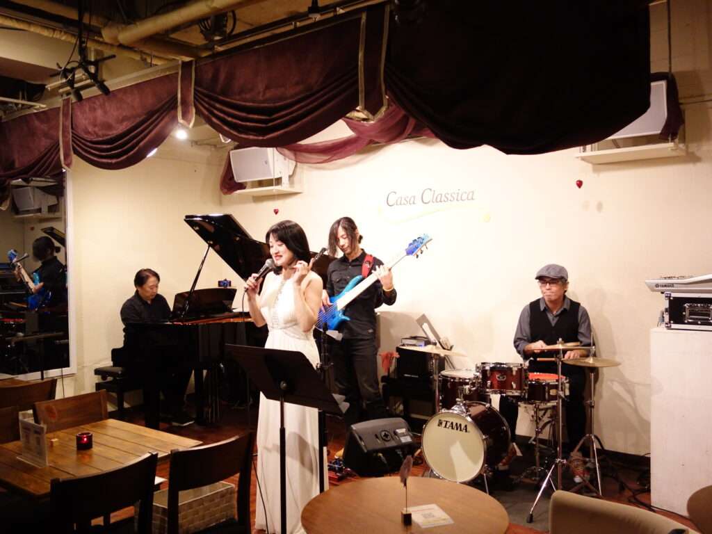 本日の東京クラシック ライブハウス 赤坂カーサクラシカは、さんかくかんけいプラスワン、池田ゆいさん(ヴォーカル)たっくやまださん(ピアノ)金城ロビンさん(ベース)仁科希世彦さん(ドラム)ご出演でした。池田さんの可憐な歌声でポップスの数々をおおくりくださり、ファンキーなピアノ、ドラム、ベースと共にノリノリの演奏を聴かせて下さいました。ポップスの曲を生演奏で身近に体験でき、見ても聴いても楽しめるライブをありがとうございました。各地でご活躍の皆さま、またのご出演もお待ちしております。