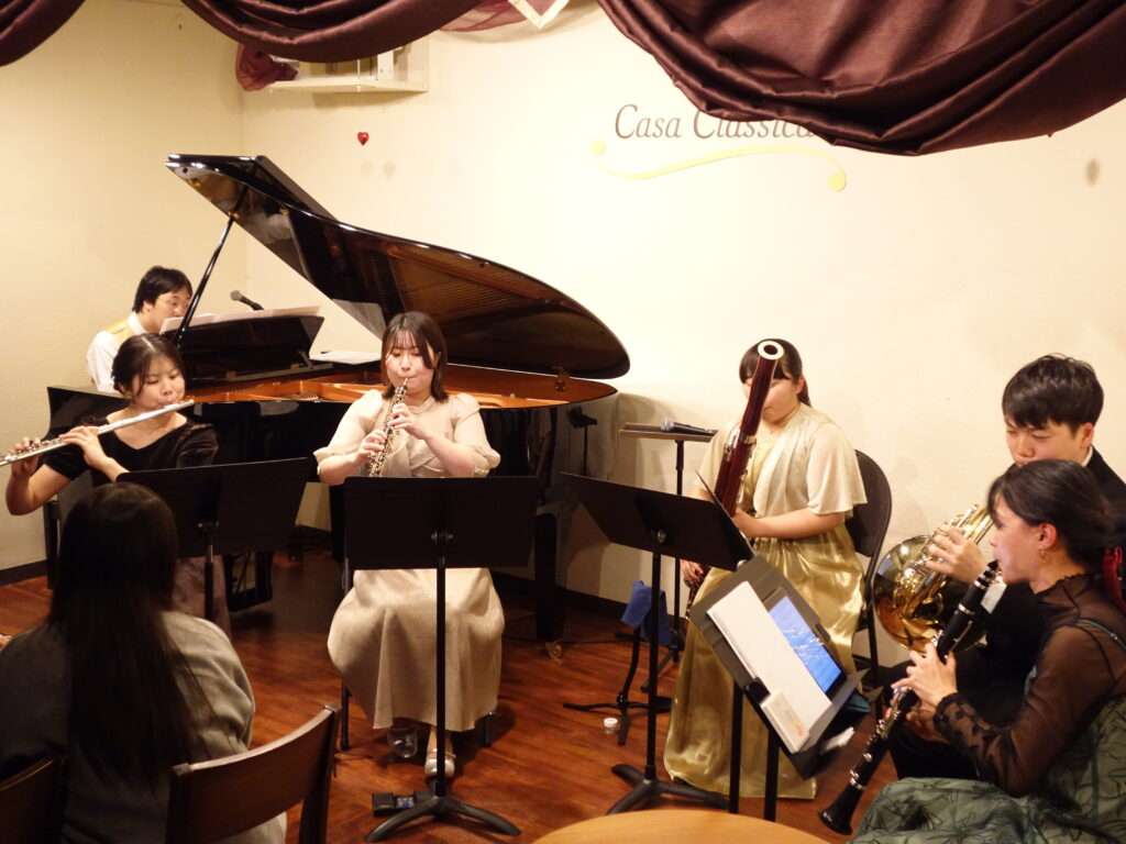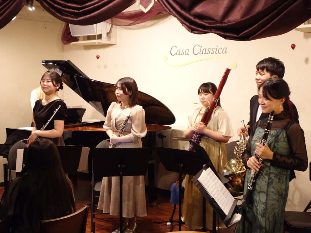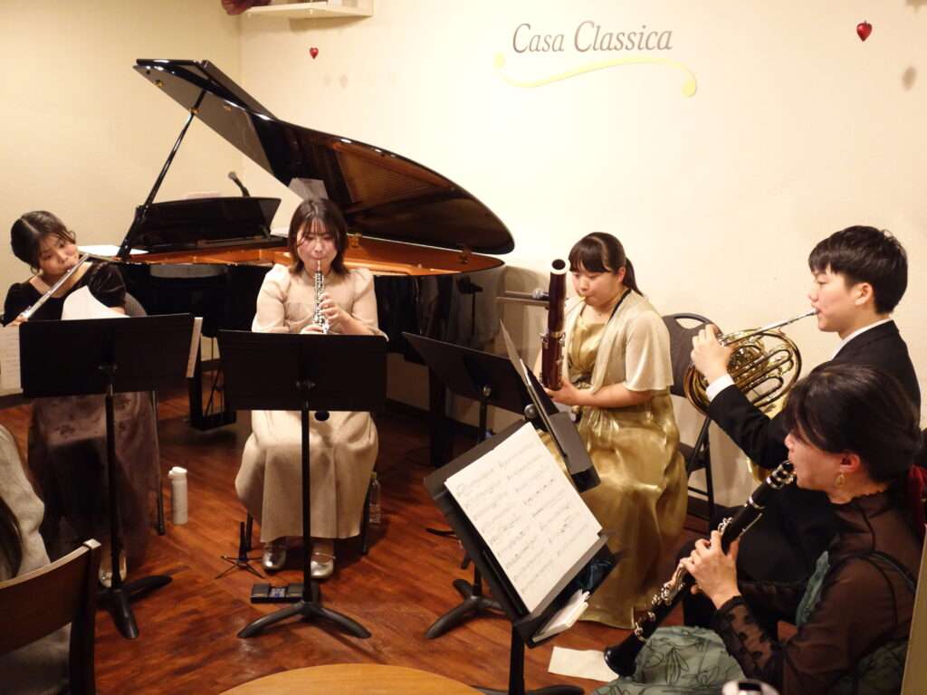 本日の東京クラシック ライブハウス 赤坂カーサクラシカは、山口広夢&木管五重奏Varietàの梅崎真綾さん(フルート)、宮本菜摘さん(オーボエ)、成瀬未涼さん(クラリネット)、佐藤俊輝さん(ホルン)、満田まはろさん(ファゴット)、山口広夢さん(ピアノ) ご出演でした🎶有名クラシック曲から始まり、木管六重奏のために編曲されたピアノ曲などをお届け下さり、木管五重奏、木管六重奏を堪能する2ステージとなりました。各ステージのトリは山口さんのオリジナル曲で、山口さん想いの詰まった曲をお届け下さり、壮大な音楽にお客さまも聴き入っていらっしゃいました。素敵な時間をありがとうございました!皆さまのまたのご出演を心よりお待ちしております。