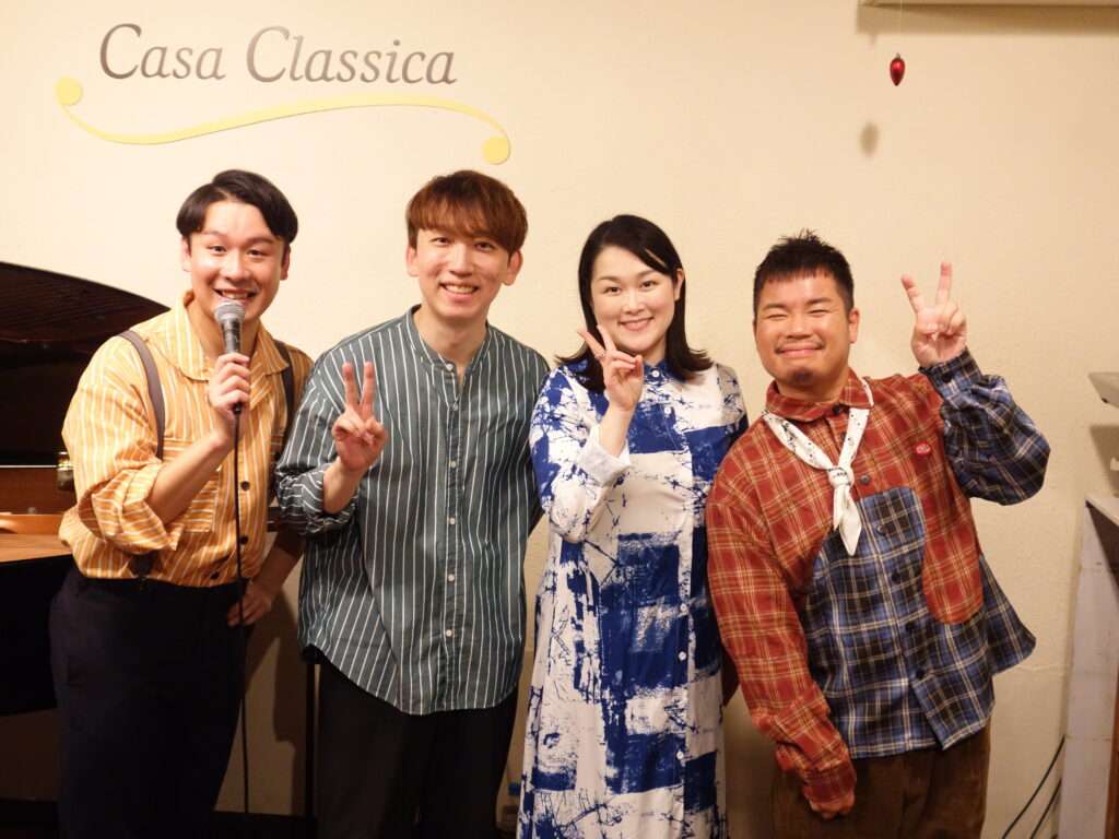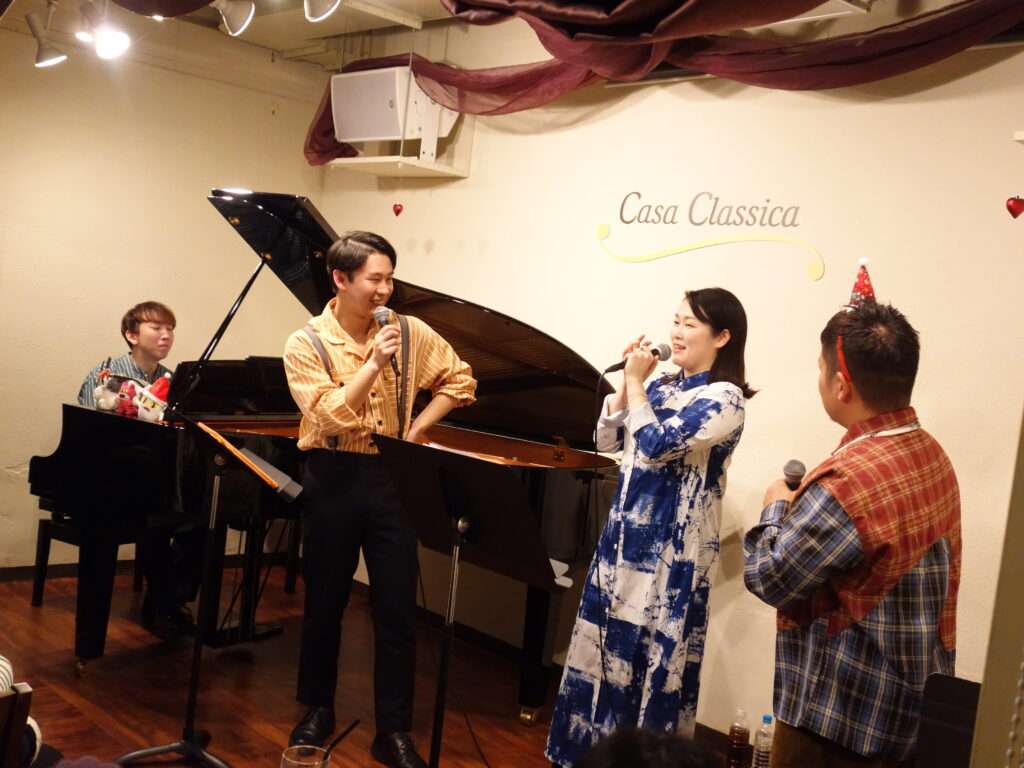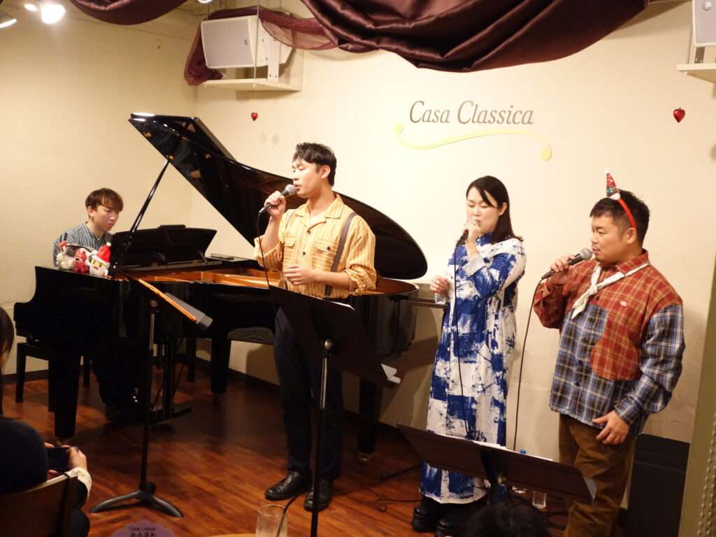本日の東京クラシック ライブハウス 赤坂カーサクラシカは、白色のリボン~A wink to winter~で、田野倉大樹さん(ヴォーカル)、本多羅偉さん(ヴォーカル)、門岡明弥さん(ピアノ)のそしてゲストの高梨さおりさん(ヴォーカル)、成田寛巳さん(ヴォーカル)のご出演でした。誰もが耳馴染みのある映画音楽から始まり、冬にちなんだ曲、クリスマスソングなどをソロ、デュオ、トリオと様々な組み合わせでお届けくださいました🎶それぞれ個性光るパフォーマンスにお客さまも釘づけの様子でした!贅沢な時間をありがとうございました。本多さんは12月28日(日)にもご出演くださいます!ぜひ足をお運びください☆
