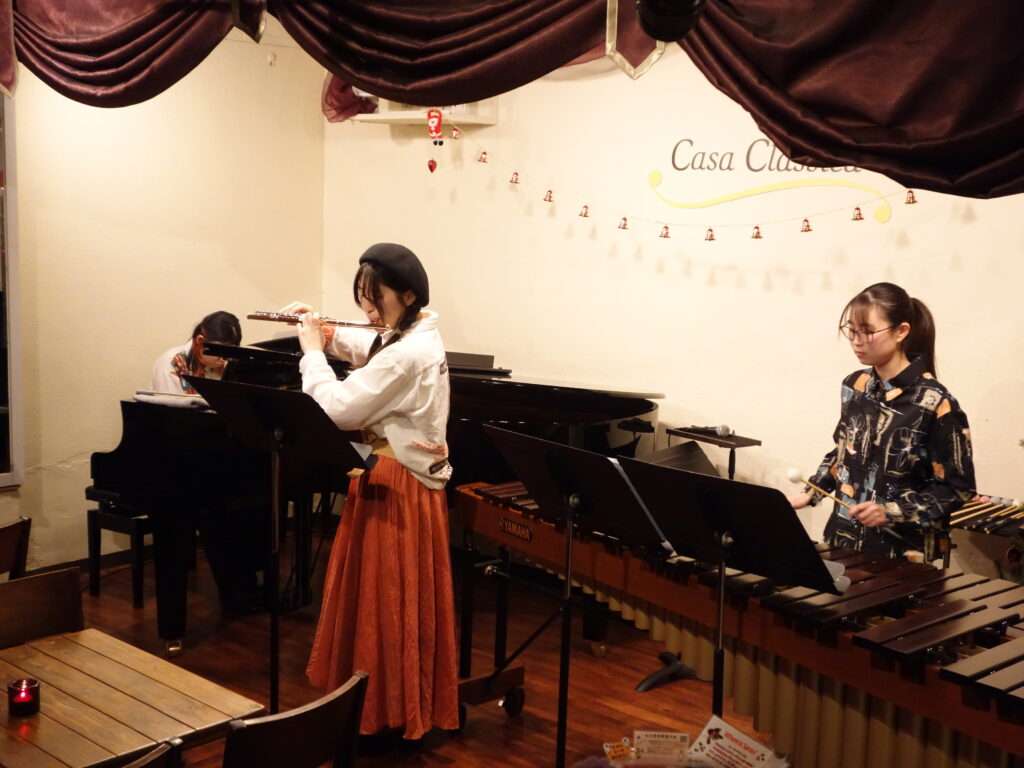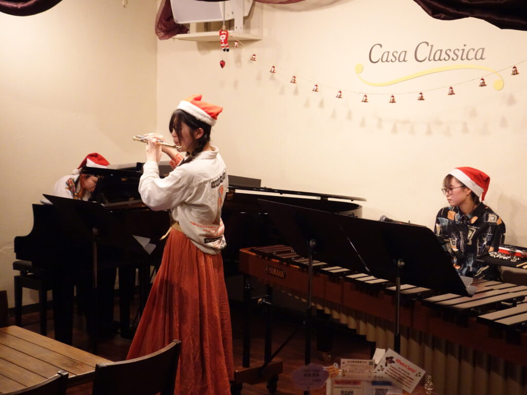 本日の東京クラシック ライブハウス 赤坂カーサクラシカは、tune trip 石原葵加さん(フルート)江川遥香さん(声楽・ピアノ・ティンホイッスル)亀井美咲さん(打楽器)~世界の音楽会~でした。それぞれの専門、そして専門外の楽器にてクラシック、ジャズ、ケルト音楽、映画音楽などをバラエティ豊かにおおくりくださり、トークと共にお客さまを楽しませていらっしゃいました。最後は息の合ったクリスマスソング、そして鳴りやまない拍手に、アンコールで応えていらっしゃいました。各地でご活躍の皆さま、またのご出演もお待ちしております🌟
