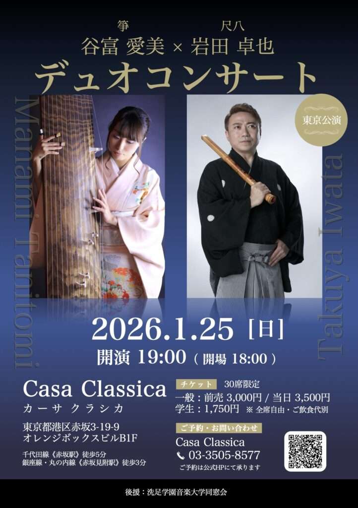 1月25日(日)夜の部 谷富愛美(箏)岩田卓也(尺八)~谷富愛美×岩田卓也 デュオコンサート~