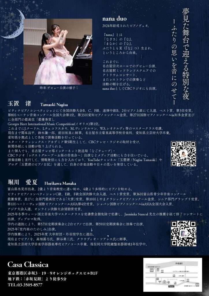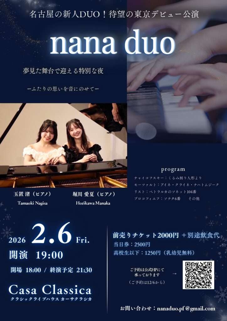 2月6日(金)夜の部 nana duo 玉置渚(ピアノ)堀川愛夏(ピアノ)nana duo東京デビュー公演