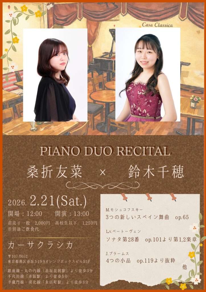 2月21日(土)昼の部 鈴木千穂(ピアノ)桑折友菜(ピアノ)~Piano Duo Concert~