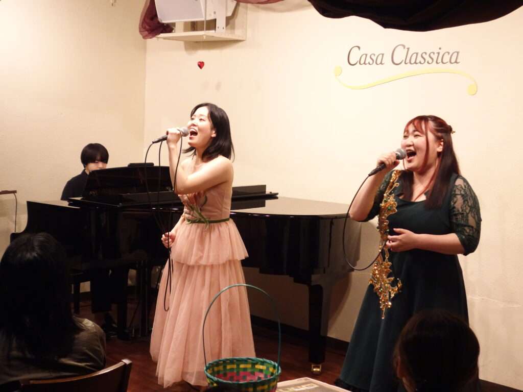 本日の東京クラシック ライブハウス 赤坂カーサクラシカは、望月美沙さん(ヴォーカル)秋美慧さん(ヴォーカル)小川浩佳さん(ピアノ)ご出演でした。ソロ、デュエットなどなどミュージカル曲が満載の楽しいステージ!トークとそれぞれのパワフルな歌声と演技で客席を魅了していらっしゃいました。人気のミュージカルより、そしてポップスの曲も挟みながら合間のトークタイムもテンポよく進み、アンコールまで息をつかせぬパフォーマンスで鳴りやまぬ拍手にも応えていらっしゃいました。エネルギッシュで素敵なステージをお届けくださった皆さま、またのご出演もお待ちしております🌟