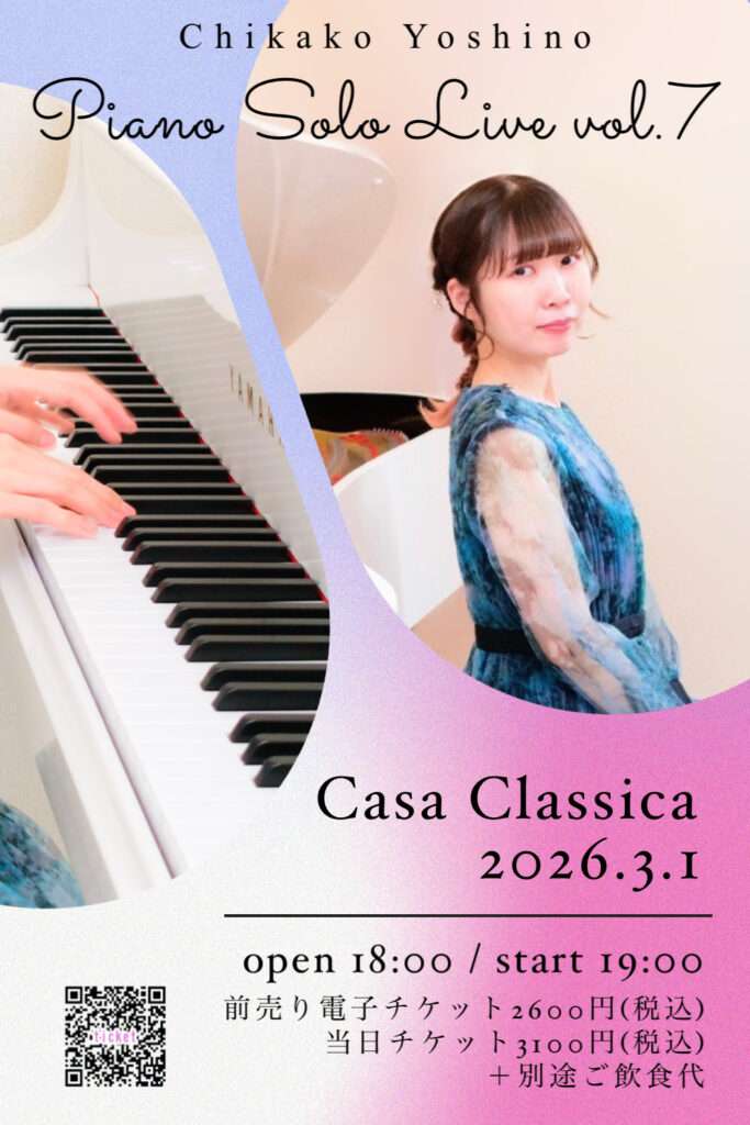 3月1日(日)夜の部 吉野千賀子(ピアノ)~Piano Solo Live vol.7~