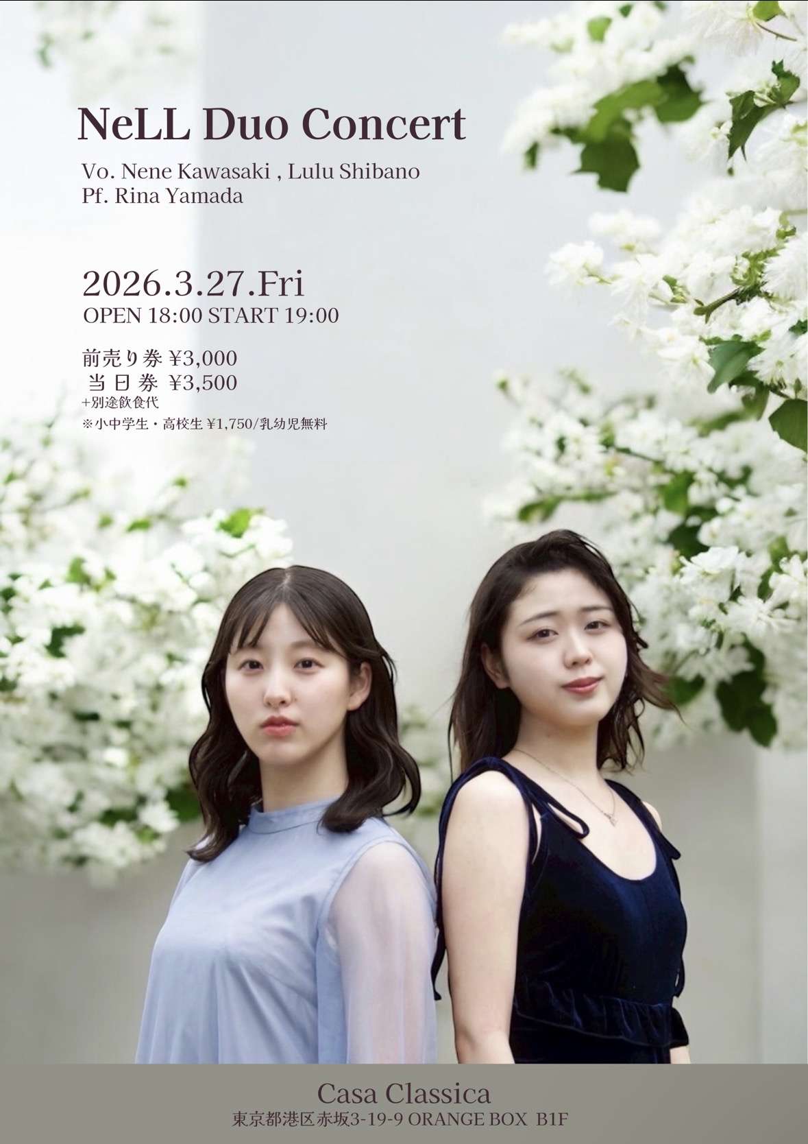 (金)夜の部 NeLL 柴野瑠々(ヴォーカル)川﨑音寧(ヴォーカル)山田梨菜(ピアノ)~Duo Concert~