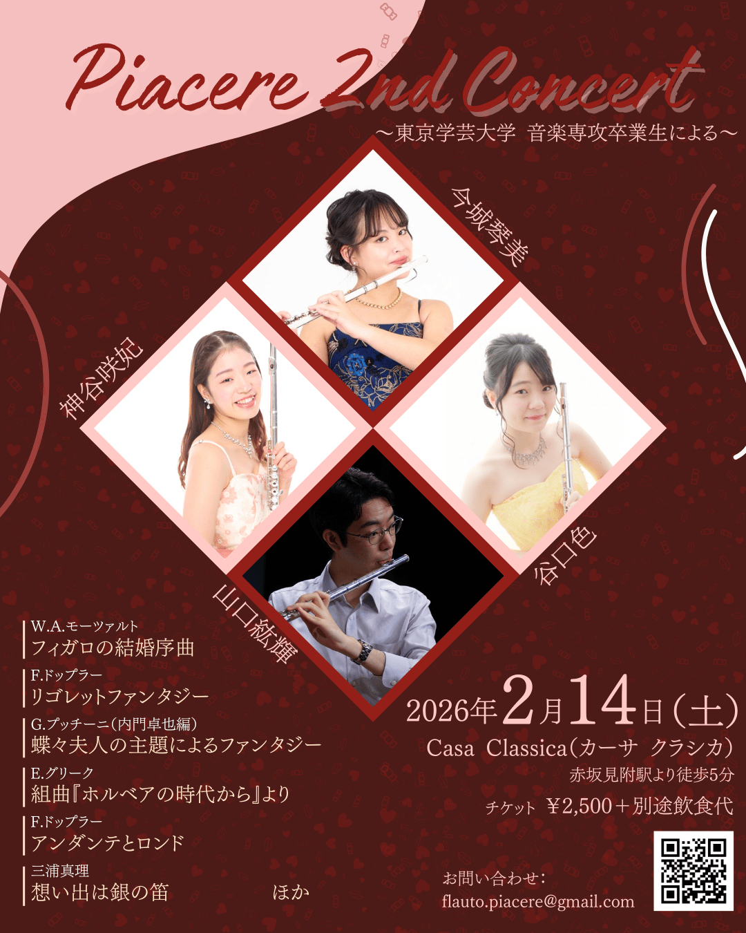 (土)昼の部 今城琴美(フルート)神谷咲妃(フルート)谷口色(フルート)山口紘輝(フルート)Piacere 2nd Concert