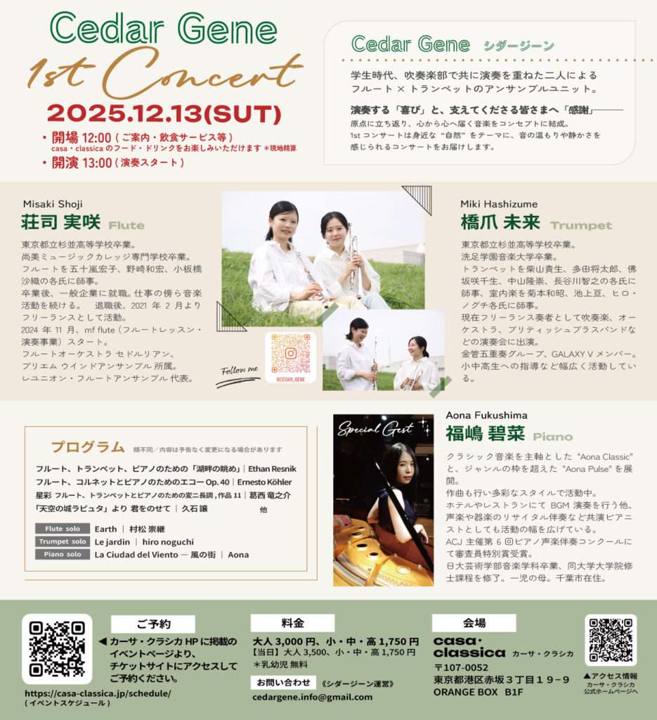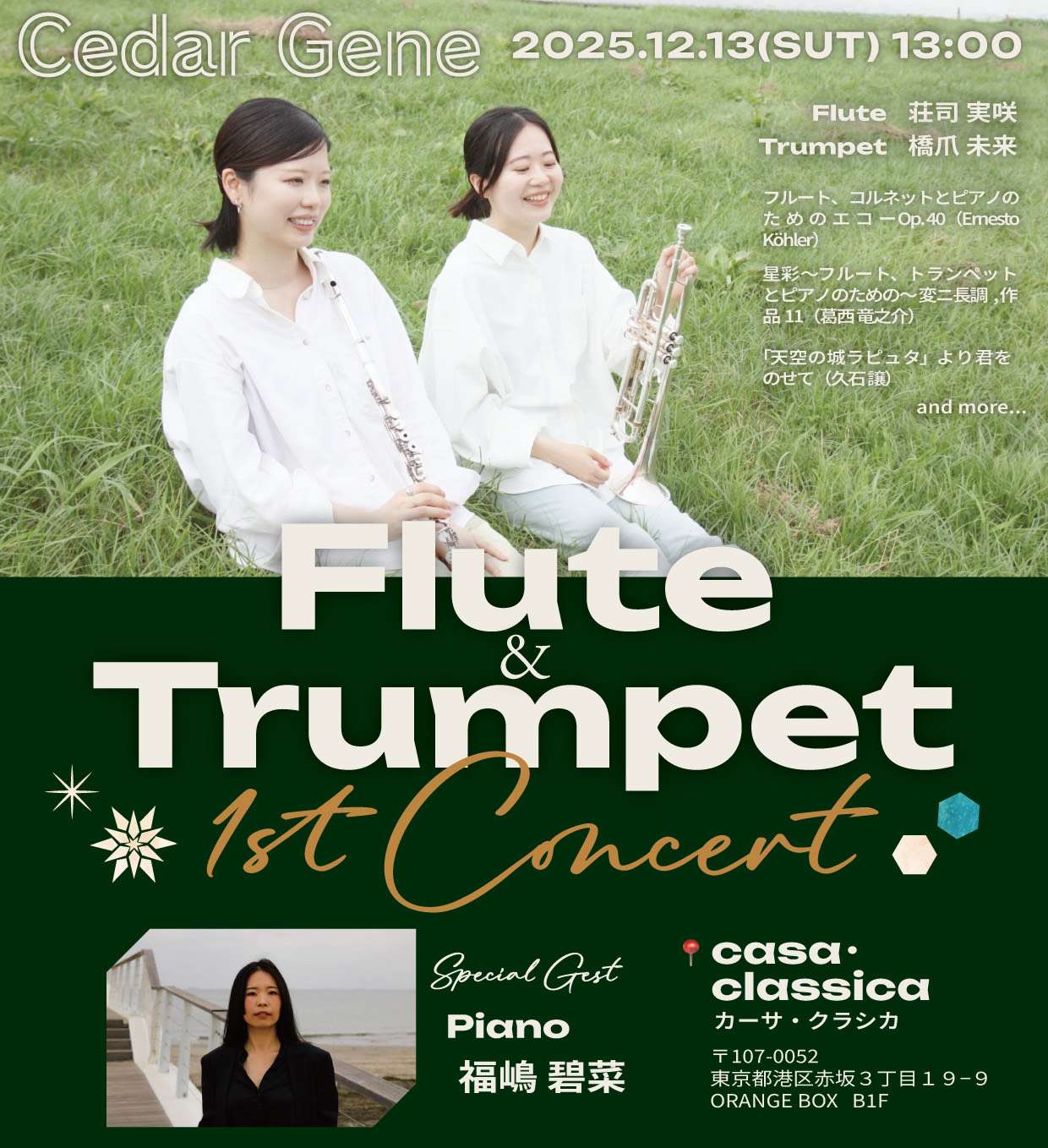 【開催延期】(土)昼の部 橋爪未来(トランペット)荘司実咲(フルート)スペシャルゲスト:福嶋碧菜(ピアノ)