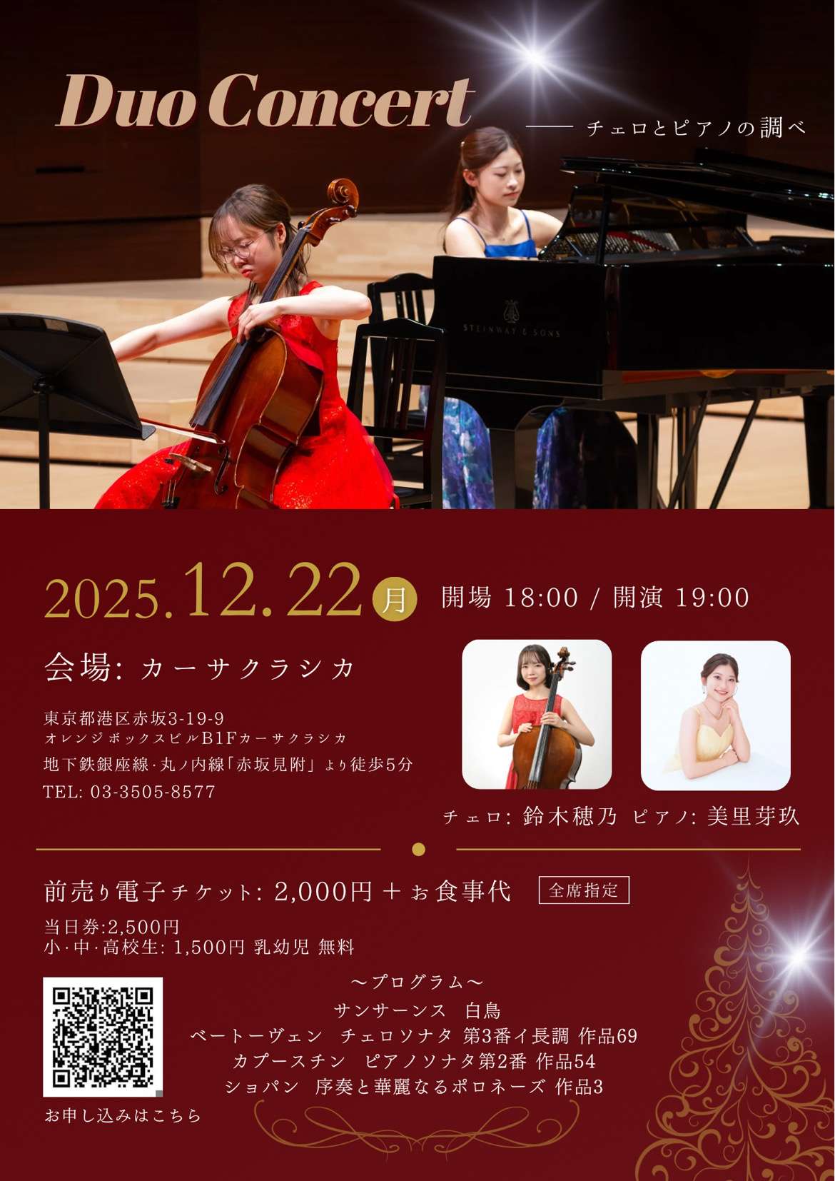 (月)夜の部 美里芽玖(ピアノ)鈴木穂乃(チェロ)