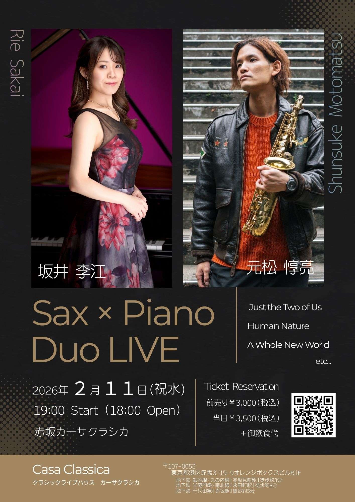 (水)夜の部 坂井李江(ピアノ)元松惇亮(サックス)~Sax × Piano Duo LIVE~