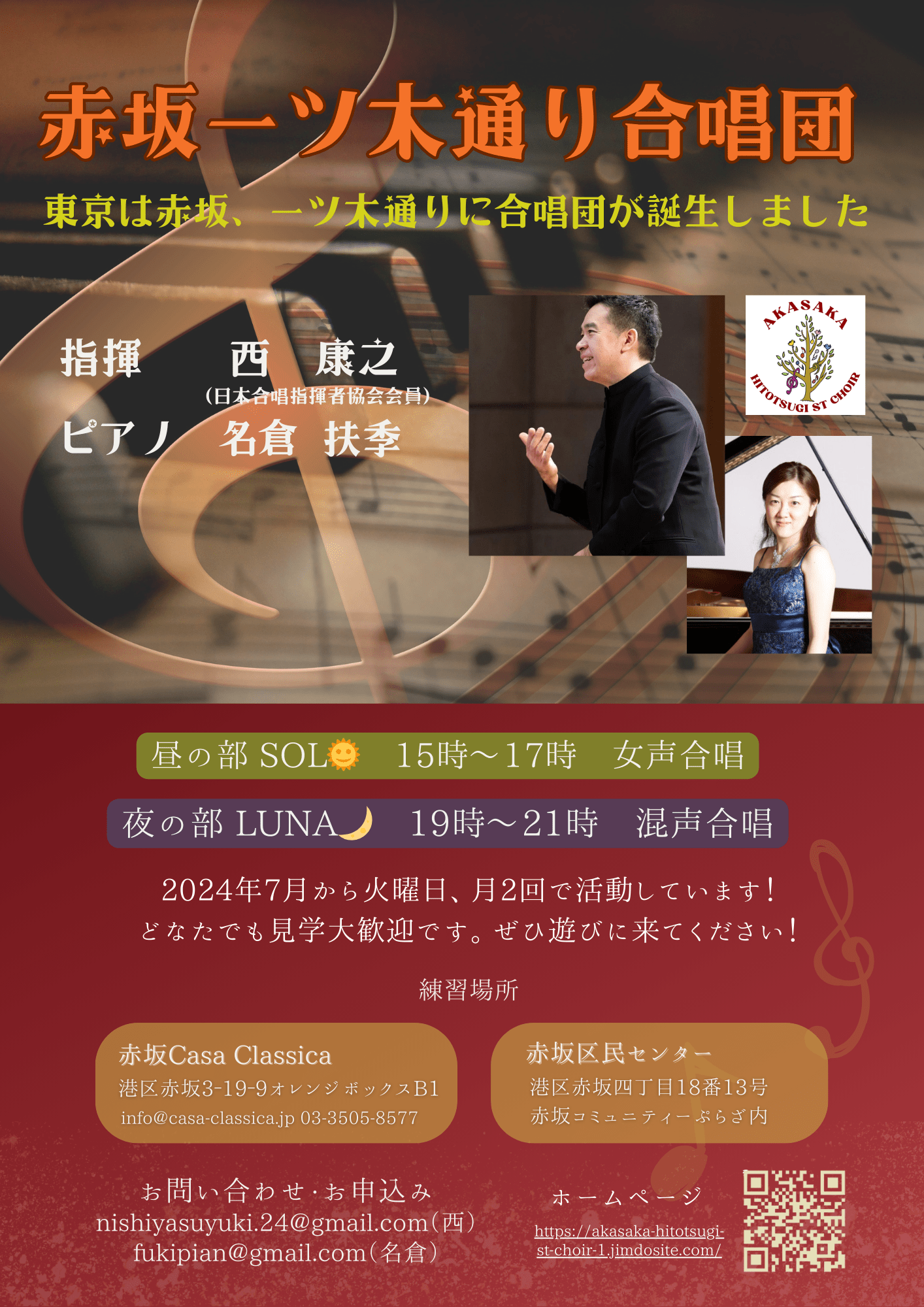 東京赤坂、一ツ木通りに誕生した「赤坂一ツ木通り合唱団」